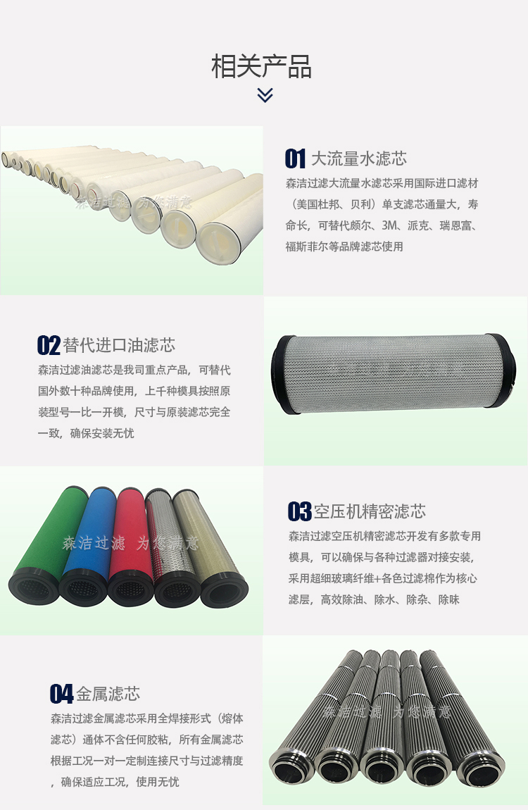 濾芯端蓋采用的不銹鋼沖壓端蓋和美國進口HV玻璃纖維過濾材料制作而成,經過森潔過濾的工藝處理后,該濾芯具有過濾效果穩定,使用壽命長的特點。過濾精度可以根據客戶的需要進行定制,濾芯的尺寸也可以根據現場情況進行定制化生產。